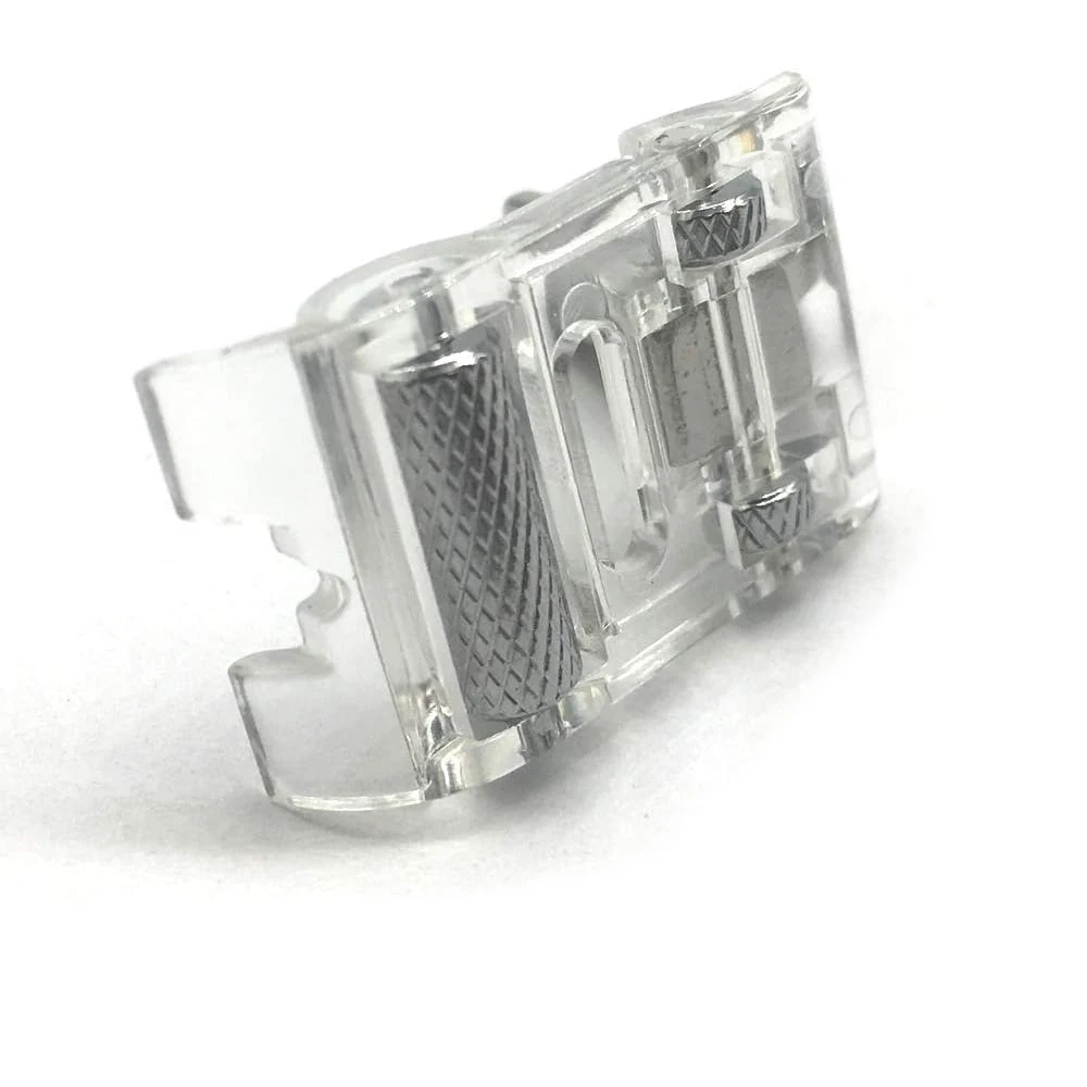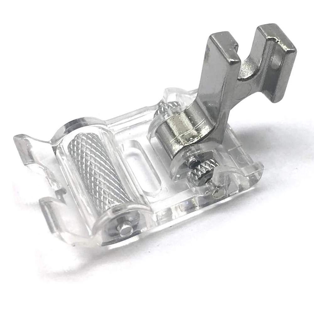 The Roller Foot is used for loosely knit materials, uneven layers of fabric or textured fabric such as velvet. Get an excellent result when sewing a flatlock hem on knits. Also use the Roller Foot as an alternative to the Teflon foot when sewing on leather or vinyl. Fits most machines that use low shank foot accessories such as: Singer, Brother, Babylock, Viking (Husky Series), Euro-pro, Janome, Kenmore, White, Juki, Bernina (Bernette Series), New Home, Necchi, Elna and More.