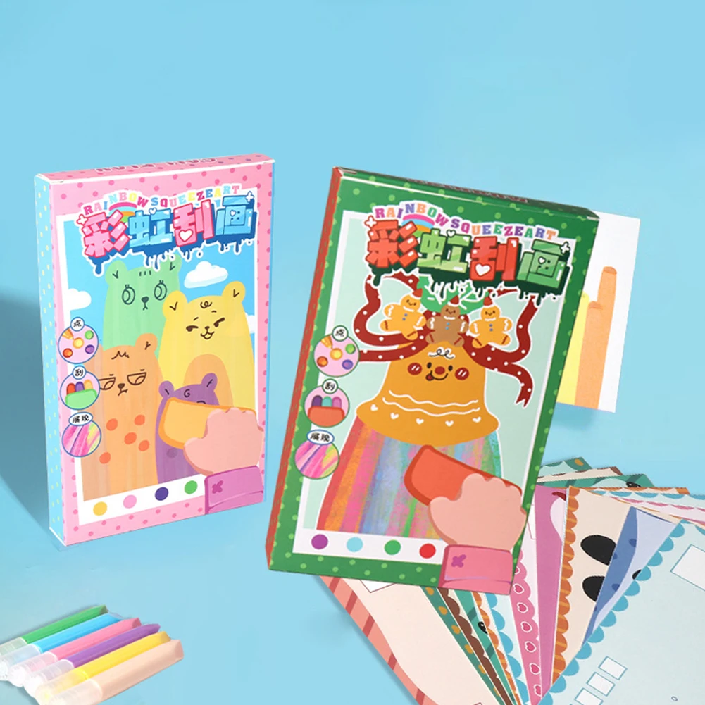 ![]() Scratch Art Painting Rainbow Scratch Art Books Interactive Rainbow Scratch Paper Set Squeegee Art Paint Kit for Kids Boys Girls Features: 1. Interactive DIY Rainbow Scratch Art: Encourage your child's creativity with this scratch art painting. It's more than just a craft set; it's an interactive experience where vibrant rainbow colors come to life through a simple scratch-and-reveal process, sparking imagination and fun. Specification: Origin: Mainland China Recommend Age: 6-12y Material: Paper Size: 200.00x130.00x20.00mm/7.87x5.12x0.79inch Applicable age: This product is suitable for children aged 3 years and above. Children under 3 years old need adult supervision when using it to avoid ingestion of small parts. Use environment: Please use this product in a well-ventilated area and avoid inhaling the smell of paint or watercolor pens for a long time. Avoid using or storing in places with high temperature, fire or direct sunlight to prevent the paint from deteriorating or the watercolor pens from drying up. Allergy warning: If you or your child is allergic to the ingredients in the paint or watercolor pens, do not use this product. If you feel uncomfortable, please stop using it immediately and consult a doctor. Ingestion warning: The paint and watercolor pens in this product are not suitable for consumption. Please ensure that children do not put the product in their mouths when using it. If you ingest paint or watercolor pens, please seek medical attention immediately. Guidelines for use: When using scratch painting, please use the scratching tool carefully to avoid scratching the skin. Wash your hands in time after use to avoid paint residue. Storage advice: Please cover the watercolor pen cap tightly after use to prevent drying up. Store the product out of reach of children. Environmental tips: Please dispose of waste paint and watercolor pens in accordance with local regulations to avoid pollution to the environment. Note: ![]() 20 x Paper