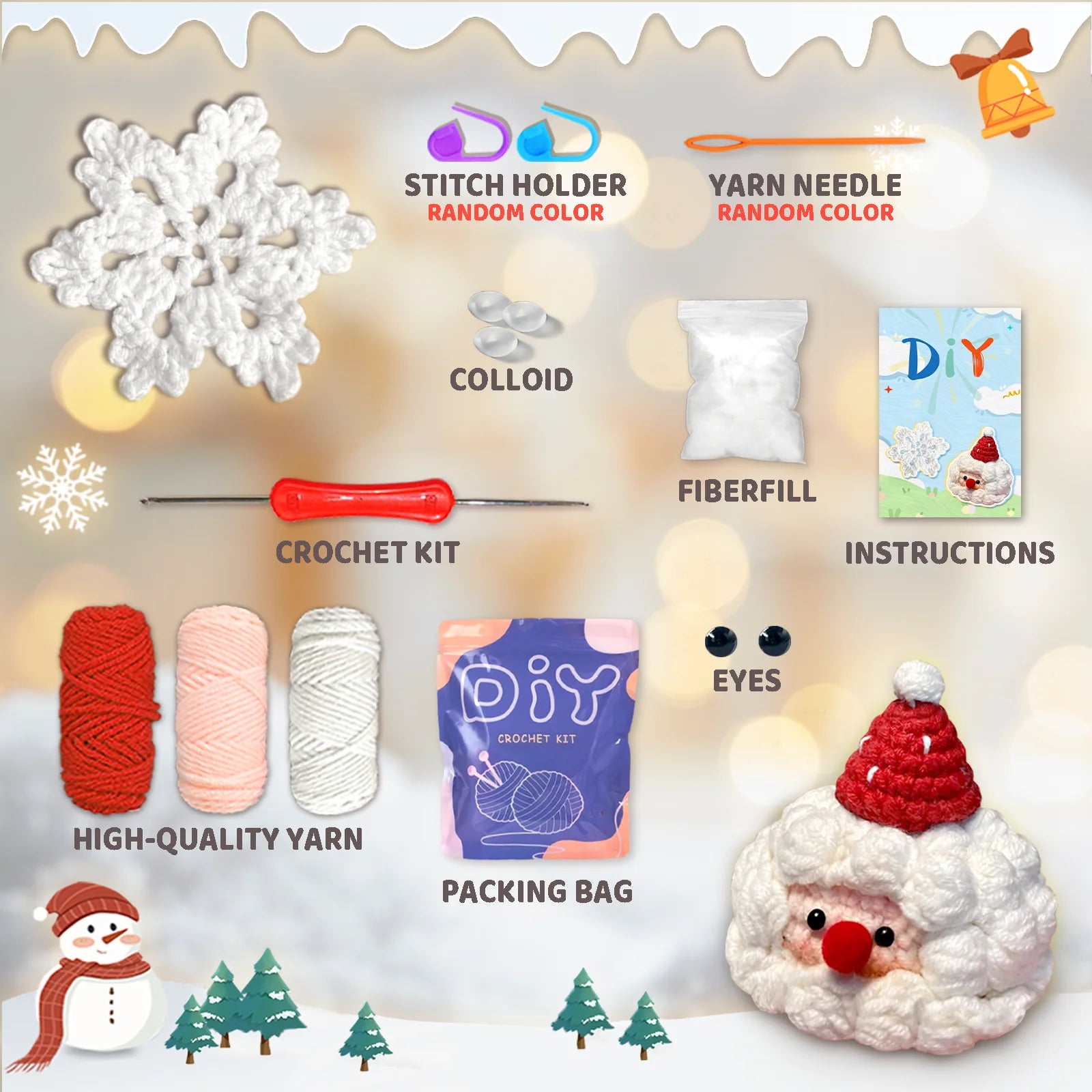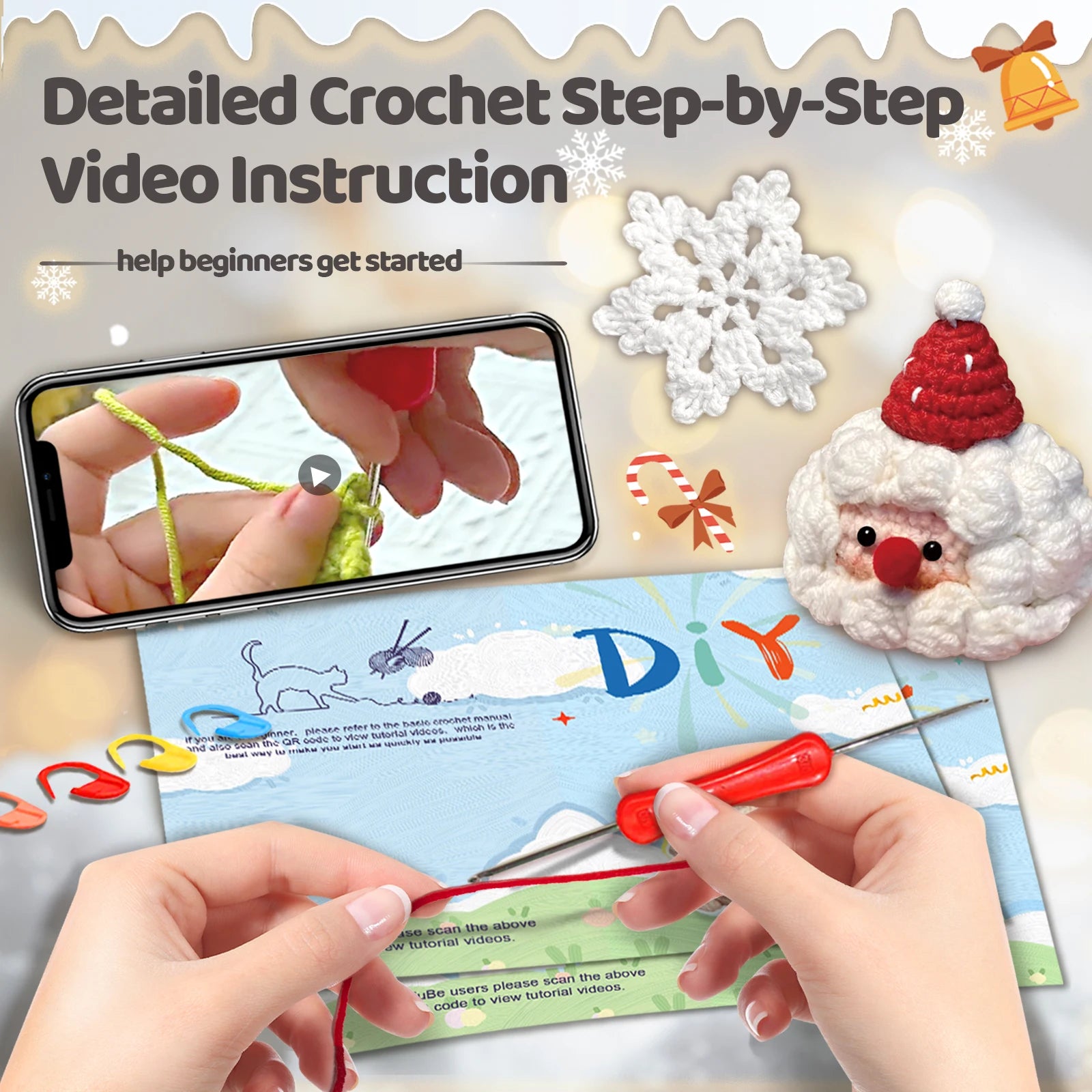 O conjunto de ferramentas artesanais incluído fornece tudo que você precisa para dar vida aos seus projetos de crochê, desde agulhas de tricô até fios.