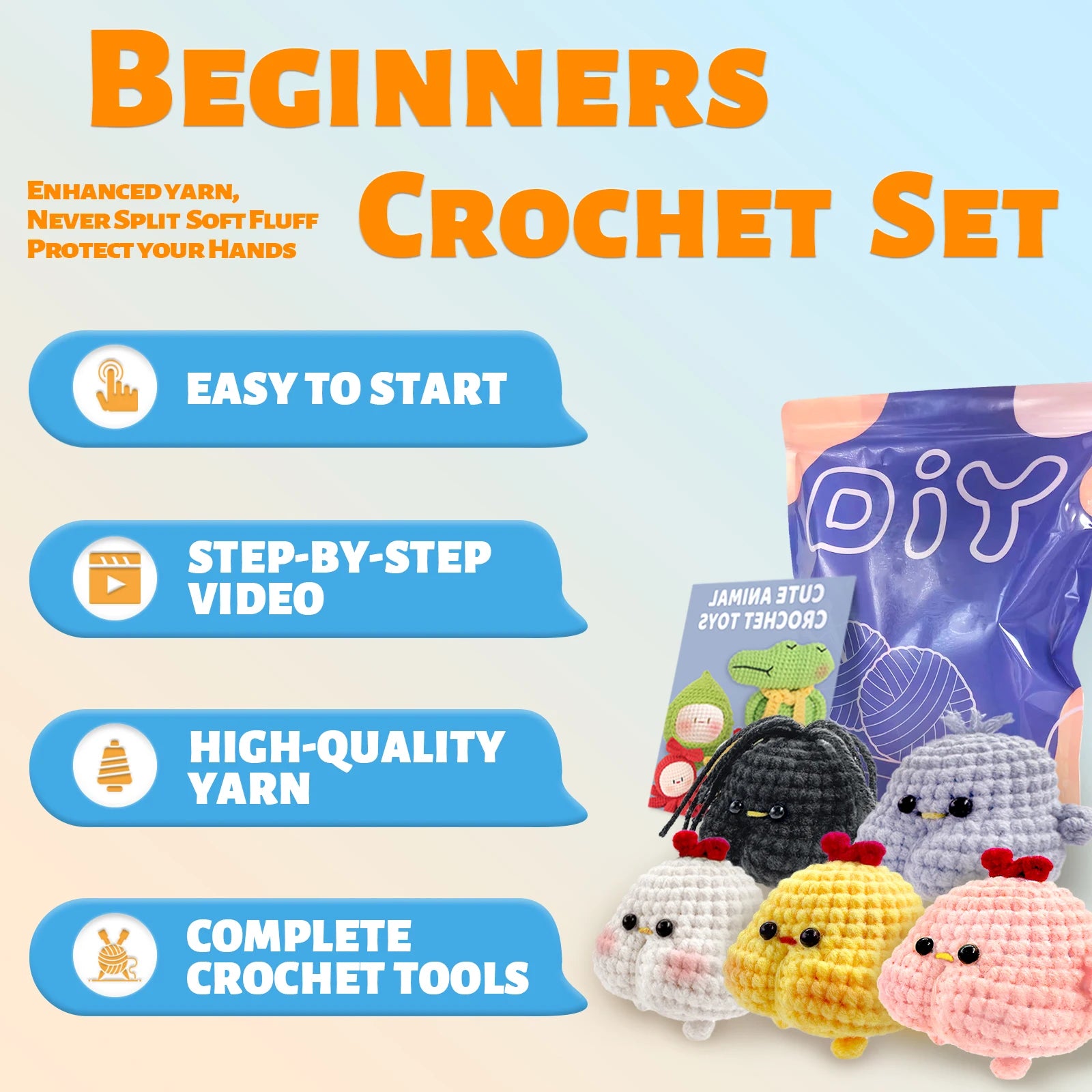 Participe de tricô DIY criativo com este kit, promovendo habilidades artísticas e proporcionando um hobby divertido para relaxamento e alívio do estresse.