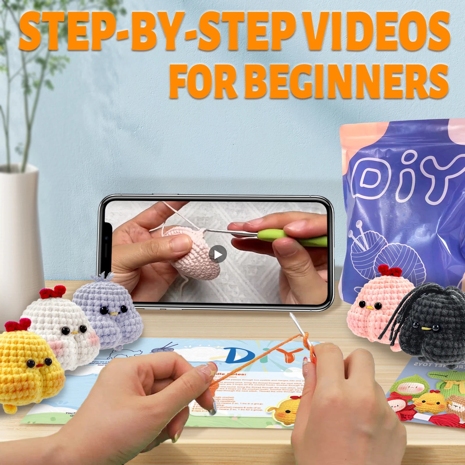 O conjunto de ferramentas artesanais incluído fornece tudo que você precisa para dar vida aos seus projetos de crochê, desde agulhas de tricô até fios.